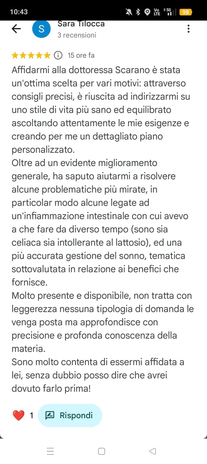 Lavorando su problematiche gastro-intestinali, sul sonno e sulle abitudini alimentari e di stile di vita, otteniamo come risultato il benessere generale, in un lavoro a 360 gradi cucito su di te, come nel caso di Sara, leggi quanto scrive: